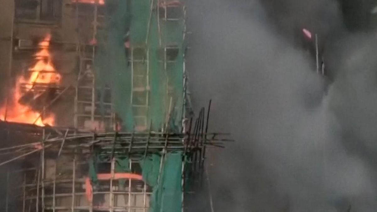 Kebakaran besar melanda bangunan tempat tinggal Wang Fuk di distrik Tai Po, Hong Kong Utara, Rabu (26/11).