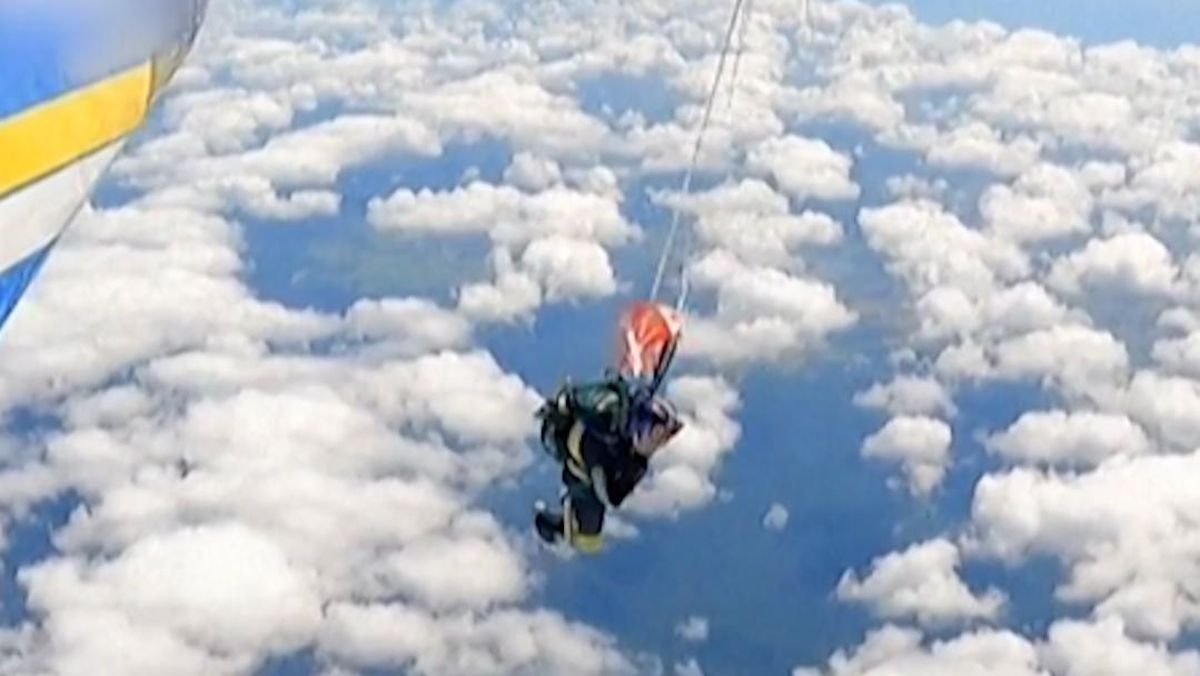 Ia kemudian berhasil menyelamatkan diri dengan memotong parasut cadangan dan membuka parasut utama.