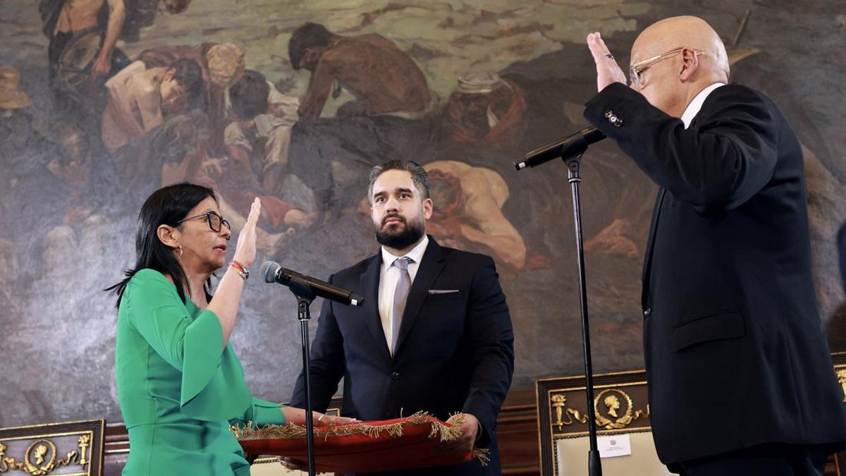 Berita Momen Delcy Rodrguez Dilantik Jadi Presiden Interim Venezuela6 January 20266 January 2026by Pahami.idby Pahami.id Jakarta, Pahami.id — Wakil Presiden Venezuela Delcy Rodriguez resmi dilantik sebagai presiden menggantikan Nicolas Maduro di Majelis Nasional Venezuela pada Senin (5/1) waktu setempat. Membagikan: URL telah disalin Gabung Channel Telegram Baca JugaBerita Demo di Iran Makin Chaos usai AS Serang Venezuela, 29 Orang TewasBerita RI Resmi Punya Hotel Kampung Haji di SaudiBerita 2 Eks Petinggi BUMN PT PP Didakwa Rugikan Negara Rp46,8 MiliarBerita Puluhan Ribu Tentara Kolombia Jaga Perbatasan VenezuelaBerita Prabowo Sindir Balik Pihak-pihak yang Mengkritik MBG: Kita BuktikanBerita Trump Beri Sinyal Incar Iran usai Tangkap Maduro: MIGA!Berita Update Bencana Sumatra 6 Januari: Korban Meninggal 1.178 OrangBerita Presiden Kolombia Petro Siap Angkat Senjata Balas Ancaman Trump
