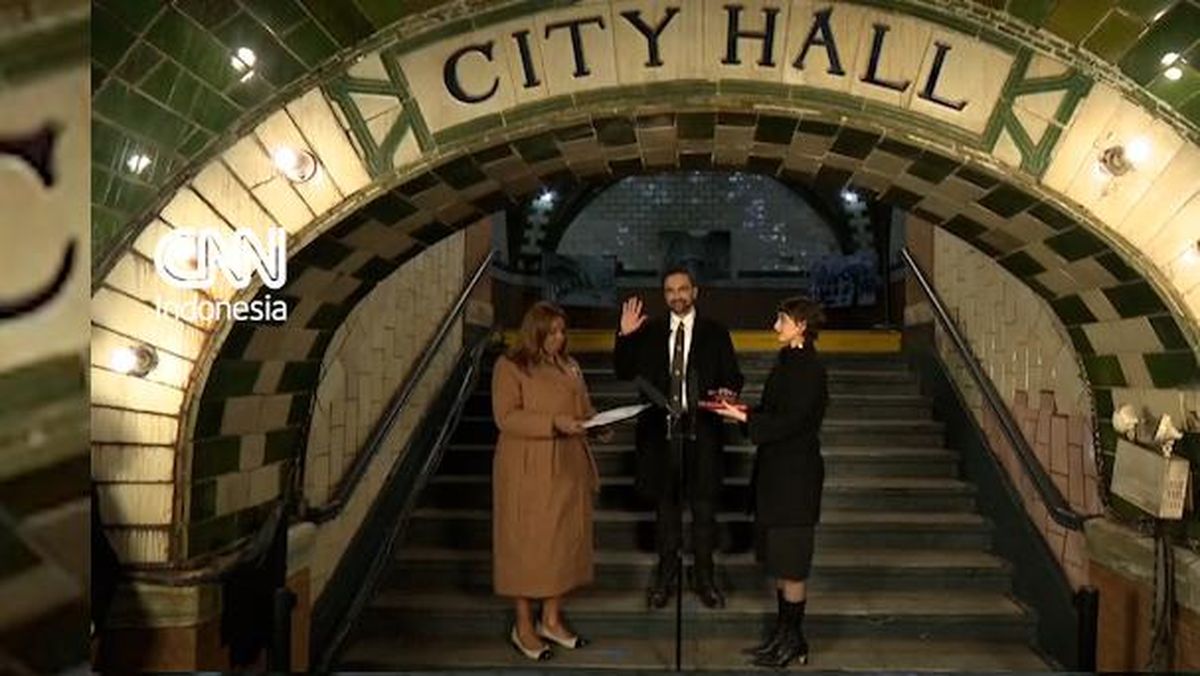 Zohran Mamdani dilantik sebagai walikota New York di stasiun kereta bawah tanah Balai Kota yang ditinggalkan pada Kamis (1/1).