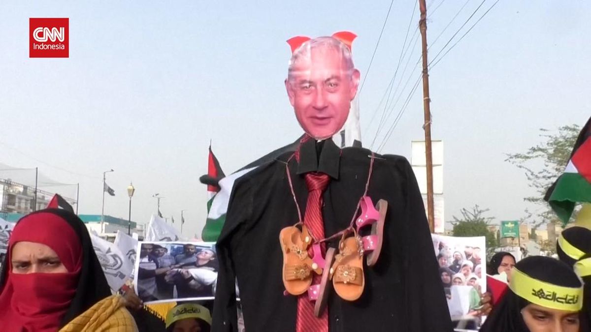 Kota di Pakistan menggelar demonstrasi mengecam tindakan Israel mencegat armada Sumud Flotilla (GSF) global, pada Selasa (7/10).