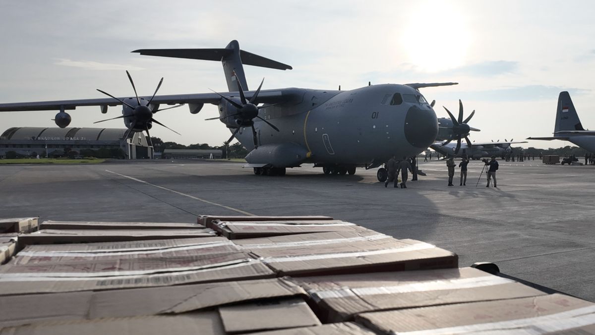 “Empat pesawat lepas landas pagi ini: Tiga pesawat Hercules, kemudian pesawat A400 yang tiba di Indonesia awal bulan ini untuk terbang ke tiga wilayah terdampak bencana,” kata Teddy dalam siaran persnya usai penyerahan bantuan.