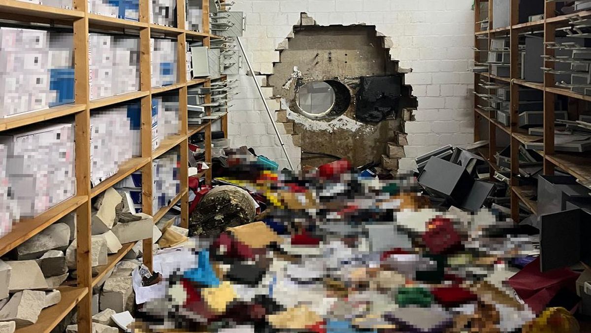 Menurut polisi, para perampok mengebor ke tempat penyimpanan bawah tanah Sparkasse dari tempat parkir di atas.