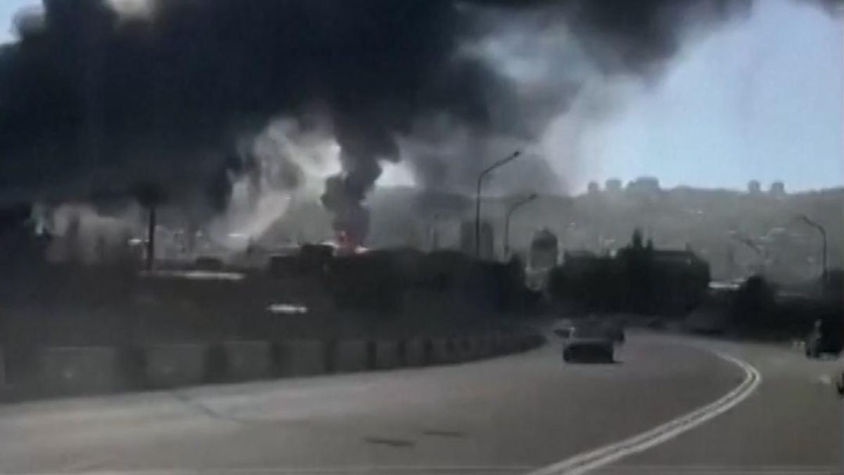 Video rekaman warga menunjukkan asap hitam membumbung tinggi dari kawasan kilang minyak usai serangan.