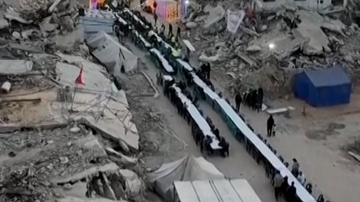 Berita Warga Gaza Berbuka Puasa di Antara Puing Bangunan Bekas Dibom Israel