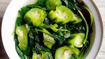 Oyong bisa dipadukan dengan bayam yang terkenal sebagai sayuran hijau bernutrisi tinggi. Cara membuatnya bisa dijadikan sayur bening yang praktis dan bumbunya minimalis.
