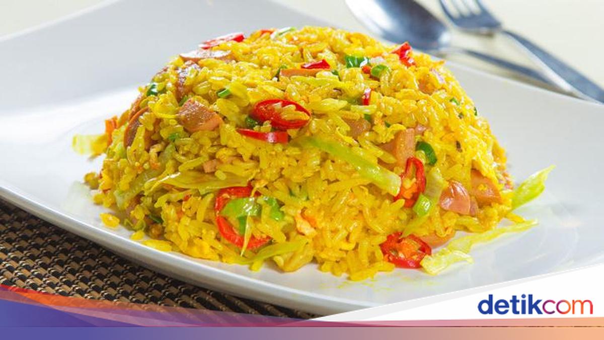Nasi goreng kunyit juga menjadi jenis nasi goreng khas Jawa Barat yang racikannya tak kalah enak. Tambahkan potongan sosis agar makin nikmat jadi menu sarapan.